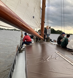 Platbodems hebben veel bijgedragen aan de ontwikkeling van de Nederlanden. Met hun geringe diepgang en toch goede zeileigenschappen waren het ideale schepen voor het vervoer en de visserij op de vaak ondiepe wateren. En dat geldt uiteraard nog steeds: platbodems zijn ideaal om mee te zeilen (en droogvallen) op bijvoorbeeld het wad en de Friesche en Zeeuwse wateren. Wellicht heb je weleens gedacht: dat wil ik ook kunnen, varen met zo’n schip. Of je afgevraagd: hoe werkt dat nou eigenlijk, zo’n platbodem, met van die zwaarden aan de zijkant, en katten in het zeil enzo? Dat komt dan goed uit, want wij geven les op een platbodem, de FRI, een tjalk van 17 meter lang, oorspronkelijk gebouwd voor het vervoer van vracht. Een fijn zeilend, voor haar lengte handzaam schip. We gaan over de Loosdrechtse Plassen zwerven en gaan je haarfijn uit de doeken doen hoe dat nou zit met het varen op zo’n platbodem.In het voorseizoen is het mogelijk om, op afspraak, met een groep van ongeveer 6 personen één of twee dagen les te nemen.